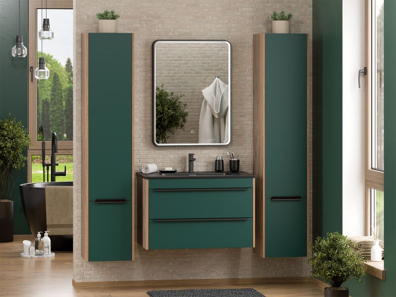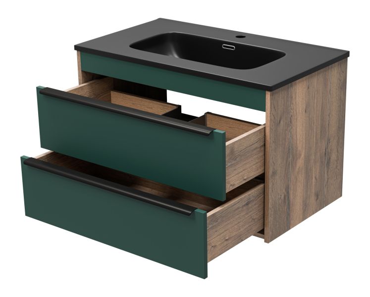 Подвесная тумба под раковину Brevita Greenwood GRE-09080-0802Я 80см зелёный/дуб Галифакс олово