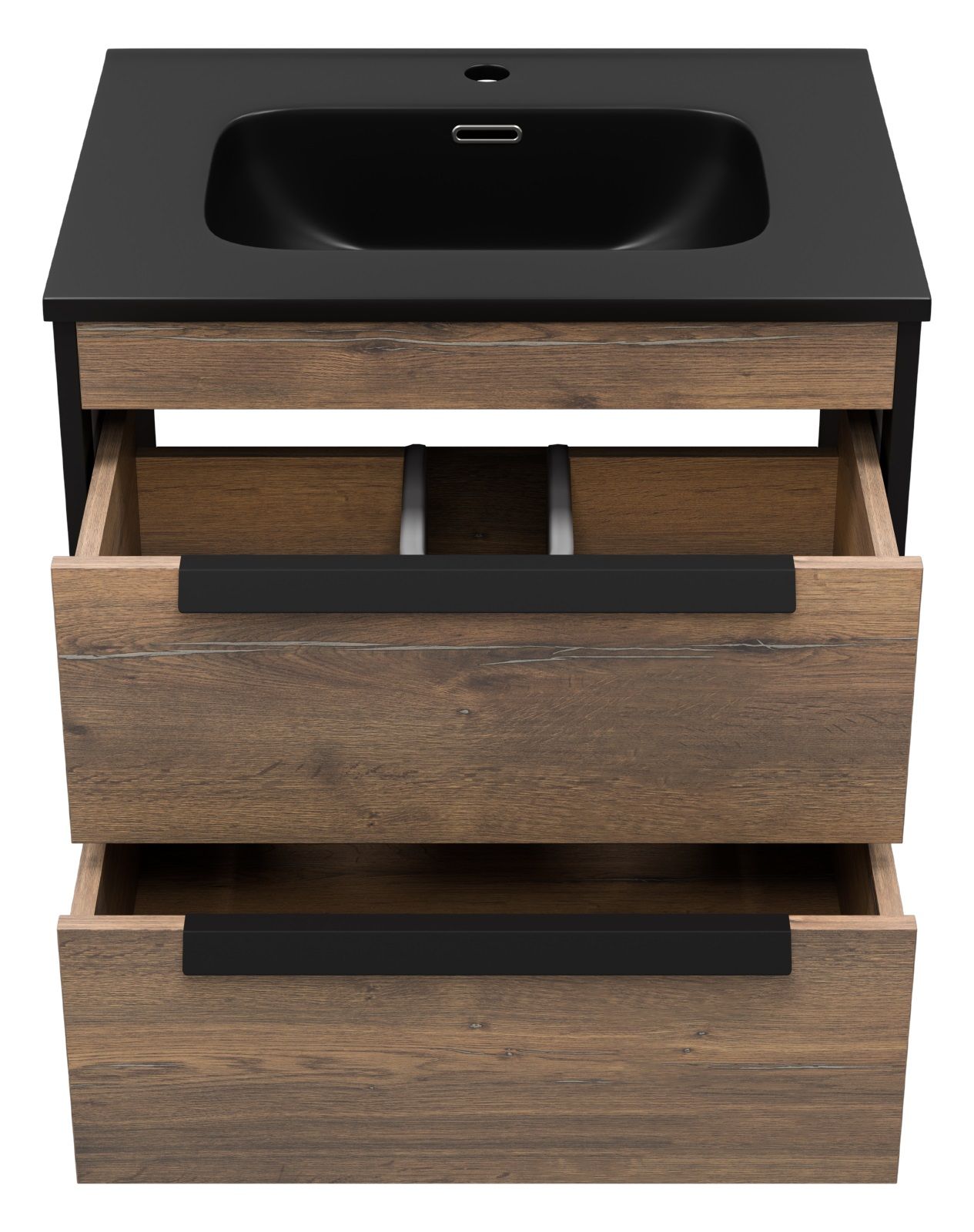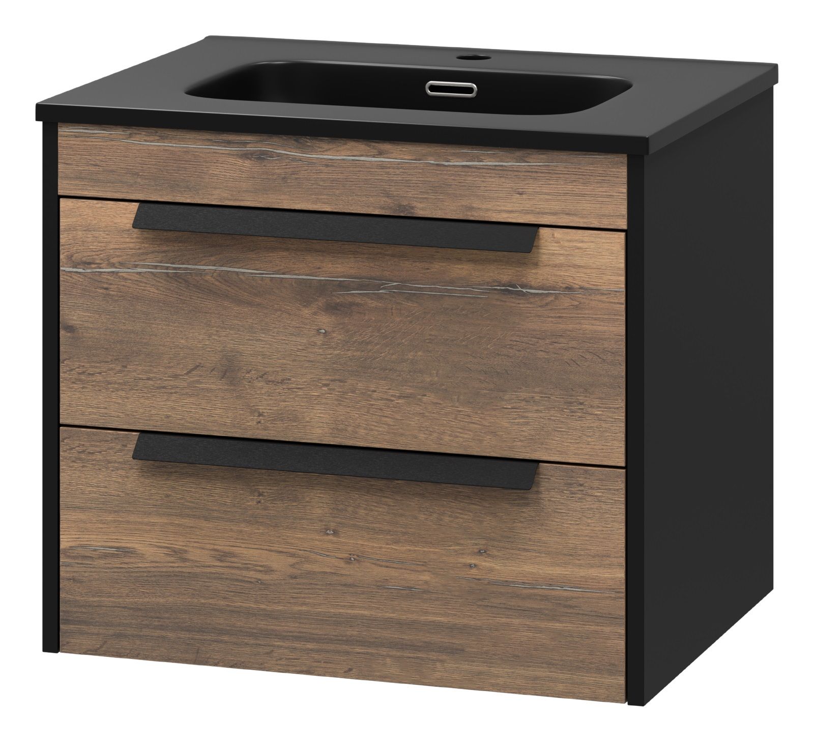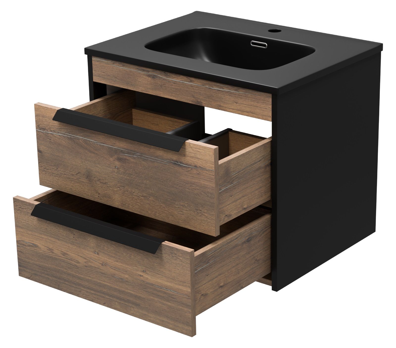 Подвесная тумба под раковину Brevita Monsour MON-09060-0102Я 60см дуб Галифакс олово/чёрный кварц