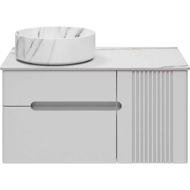 Тумба с раковиной Brevita Pallisandro 80 УТ000025399 подвесная. Pallisandro - когда эстетика встречается с функциональностью. Коллекция создана для ценителей утончённого дизайна и продуманных деталей. Здесь всё подчинено принципу элегантного минимализма: лаконичные фасады в эмали, изысканная фрезеровка на дверце и отсутствие внешней фурнитуры для чистоты линий. Главный акцент коллекции — столешницы из керамогранита, устойчивые к влаге, механическим повреждениям и химическим веществам. Накладные раковины гармонично завершают современный образ. Внутреннее пространство продумано до мелочей: ящики оснащены доводчиками скрытого монтажа, что обеспечивает плавное закрывание, а противоскользящие коврики внутри ящиков позволяют хранить вещи в идеальном порядке. Благодаря  подвесному монтажу, мебель смотрится легко, а уборка становится удобнее. Pallisandro - это премиальный комфорт, который чувствуешь в каждой детали. Характеристики: Тумба под раковину: