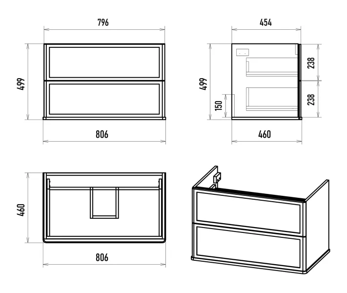 Размер мебели, мм (ш/г/в): 806x460x500
