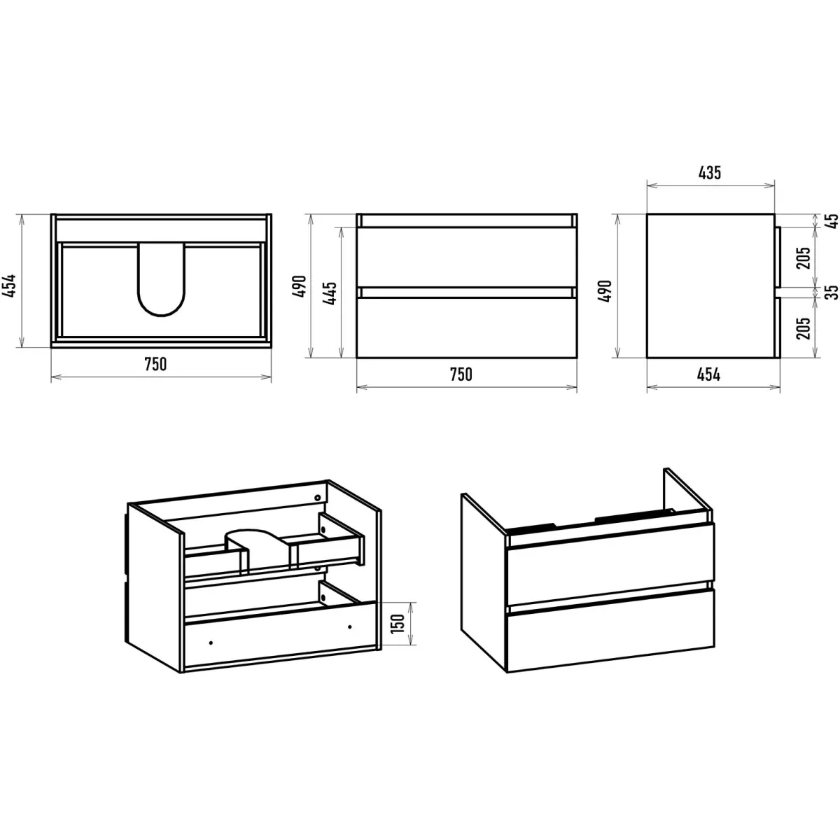 Подвесная тумба под раковину Brevita Victory 75 VIC-07080-0302Я серый