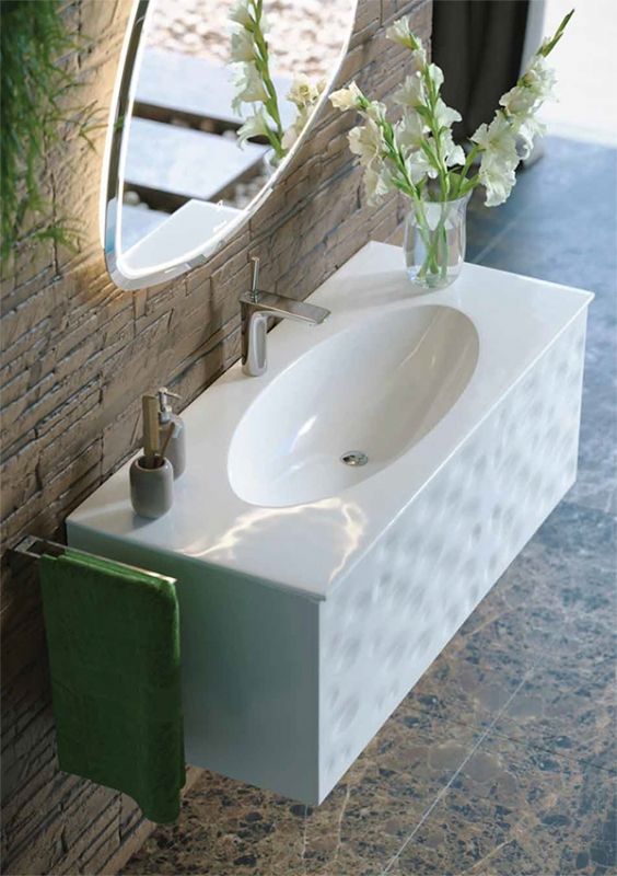 Подвесная тумба под раковину Clarberg Dune 120 DUN0112 белого цвета, с двойным выдвижным ящиком, для использования в ванных комнатах с повышенной влажностью. Эргономичность и гармония. Природные мотивы дизайна: узор песчаных дюн балтийского побережья.Технические данные:Цвет: белый.