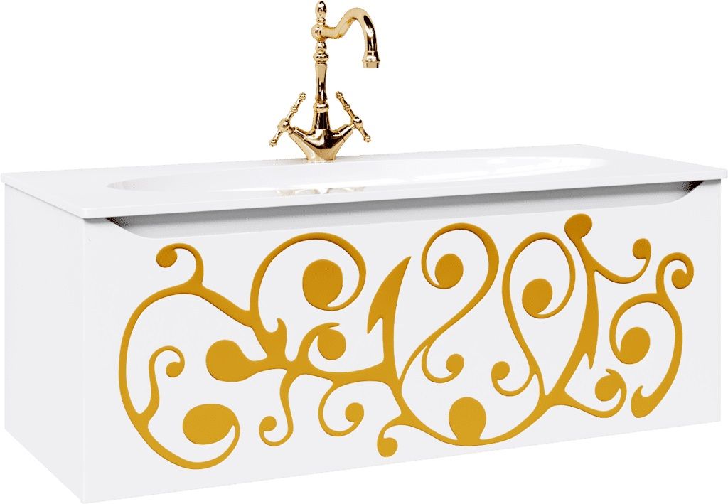 Подвесная тумба под раковину Clarberg Elegance 120 EL0112GL, с двойным выдвижным ящиком, с ручкой-выемкой. Эргономичность и гармония. Изысканный и нежный тисненый узор создает романтическое настроение.Технические данные:Цвет: белый матовый с золотым узором.
