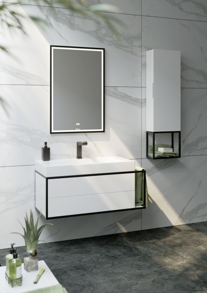 Подвесная тумба под раковину Clarberg Logic 100 R LOG0110R с двумя ящиками и дополнительной консолью для полотенец слева. Главная особенность коллекции - это применение алюминиевого анодированного профиля в чёрном цвете.Технические данные:Цвет: белый.