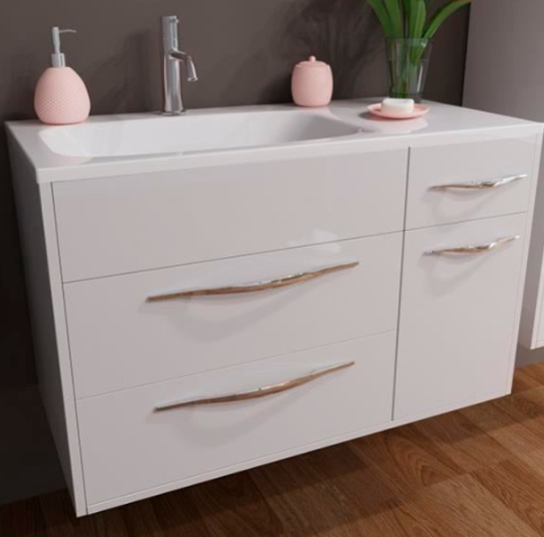 Коллекция Barcelona выполнена в стиле модерн. Плавные линии и формы подчеркивают элегантность комплекта, а разнообразие комплектации позволяет использовать мебель в качестве маркера вашего собственного стиля. За счет раковины с крылом коллекция Barcelona более вместительная и удобная. В подвесной тумбе располагаются 3 ящика и дополнительное пространство с распашной дверцей. Два ящика предполагают размещение более крупных вещей, а один ящик для мелких предметов. В секции с распашной дверцей можно разместить бытовую химиюТумба белого цвета по умолчанию. Возможна покраска по палитре RAL.