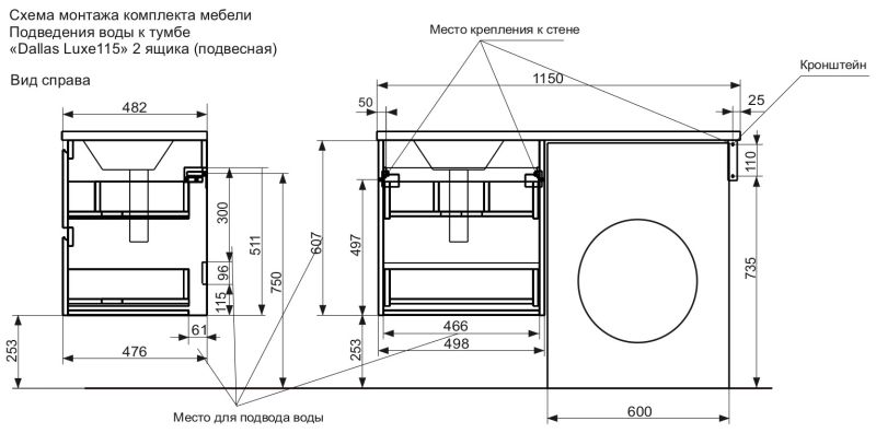 Коллекция мебели для ванной комнаты Dallas Luxe покоряет своей удивительной простой и функциональностью. Тумба укомплектована раковиной из литьевого мрамора с удобной чашей, стиральная машина устанавливается под столешницей. Широкий и вместительный ящик предназначен для крупных предметов. Подвесная система монтажа позволяет более эффективно использовать пространство, не мешает уборке в ванной комнате.