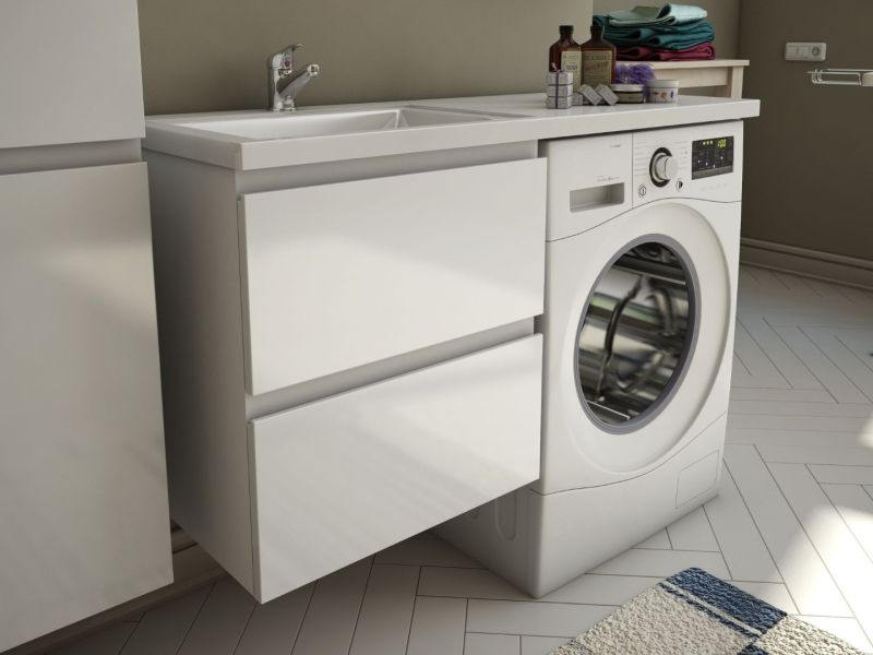 Коллекция мебели для ванной комнаты Dallas Luxe покоряет своей удивительной простой и функциональностью. Стиральная машина устанавливается под столешницей, за счет чего экономит место в ванной комнате. В тумбе имеются два ящика. Нижний ящик тумбы – широкий и вместительный – предназначен для крупных предметов, а в верхнем имеется специальная организация пространства, позволяющая хранить мелкие вещи. Подвесная система монтажа позволяет более эффективно использовать пространство, не мешает уборке в ванной комнате.