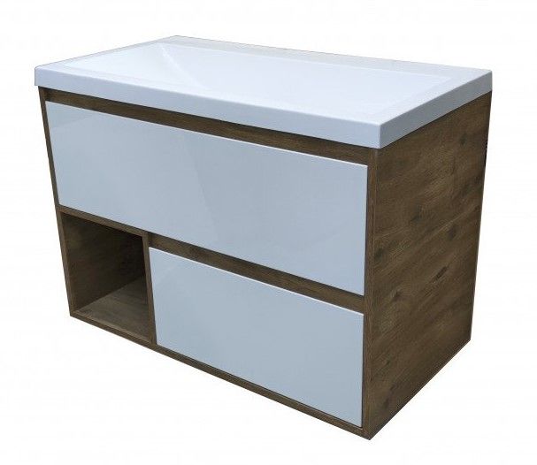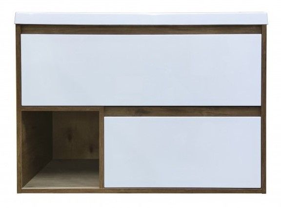 Подвесная тумба под раковину Эстет Monaco Wood ФР-00010672 90см два ящика белый/дуб рустикальный