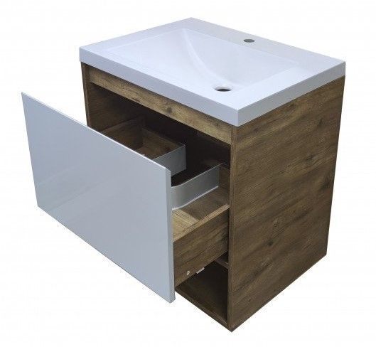 Подвесная тумба под раковину Эстет Monaco Wood ФР-00010680 60см один ящик белый/дуб рустикальный