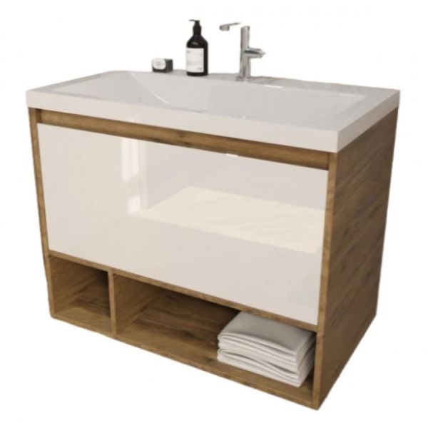 Подвесная тумба под раковину Эстет Monaco Wood ФР-00010684 90см один ящик белый/дуб рустикальный