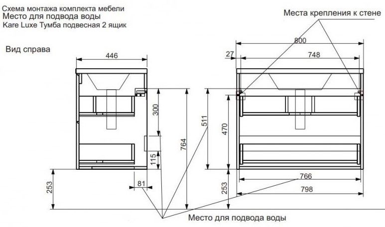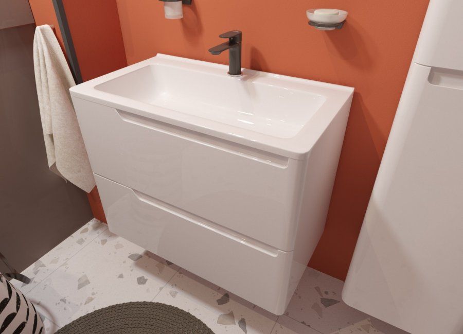 Подвесная тумба под раковину Kare Luxe ФР-00005717 80см два ящика белый