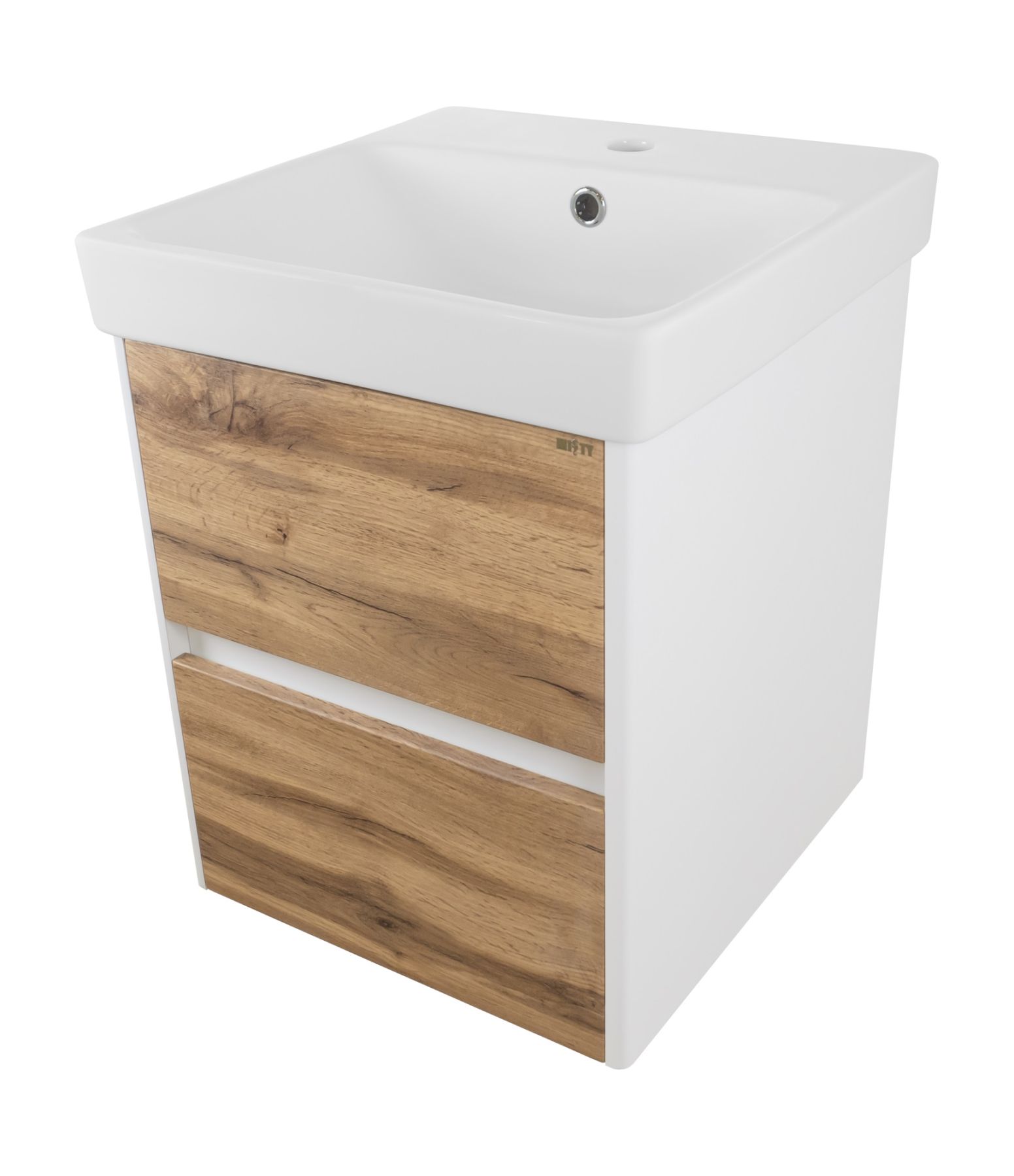 Подвесная тумба под раковину Misty Адриана 45см дуб Вотан/белый