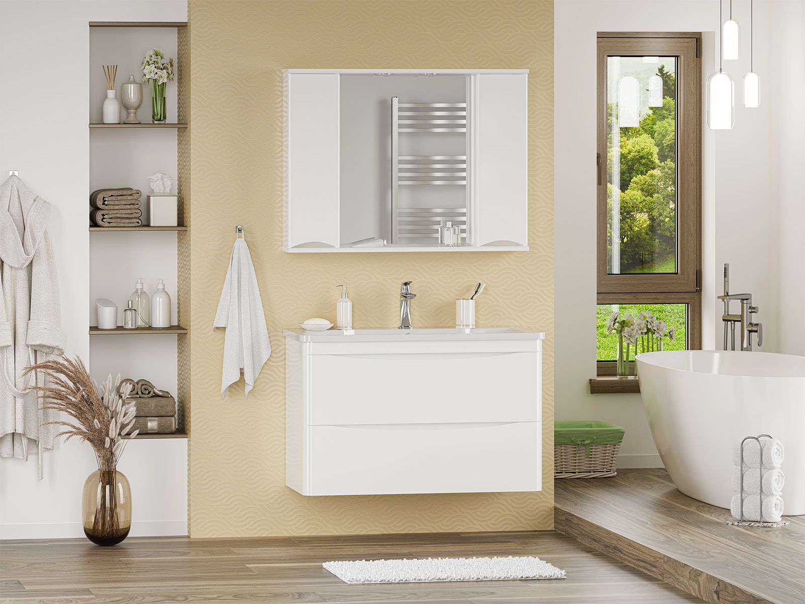 Подвесная тумба в ванную комнату – это не просто элемент мебели, а подлинный акцент в интерьере, который сочетает в себе функциональность и стиль. Она придаёт помещению лёгкость и воздушность, освобождая пространство на полу и создавая иллюзию большего объёма.Функциональные особенности таких тумб варьируются от наличия выдвижных ящиков до встроенных систем хранения, которые помогают организовать пространство ванной комнаты. Важным аспектом является также возможность выбора различных цветовых решений и отделок, что позволяет гармонично вписать тумбу в любой интерьер – от классического до ультрасовременного.С помощью подвесной тумбы ванная комната становится не только более удобной, но и эстетически привлекательной, создавая атмосферу уюта и роскоши.