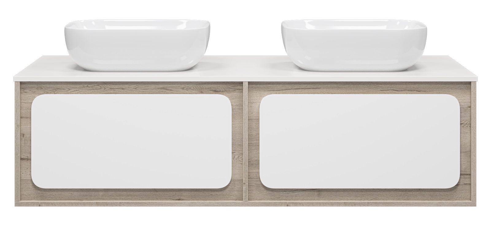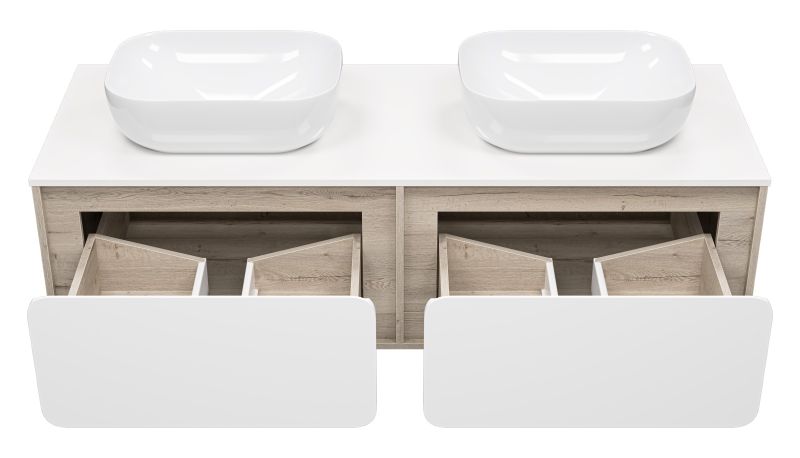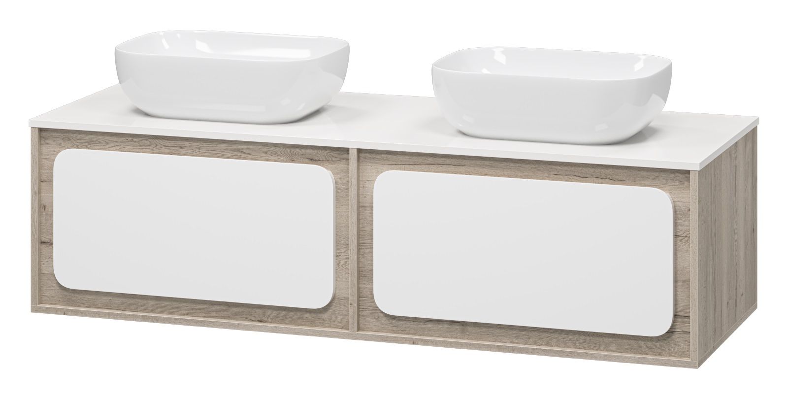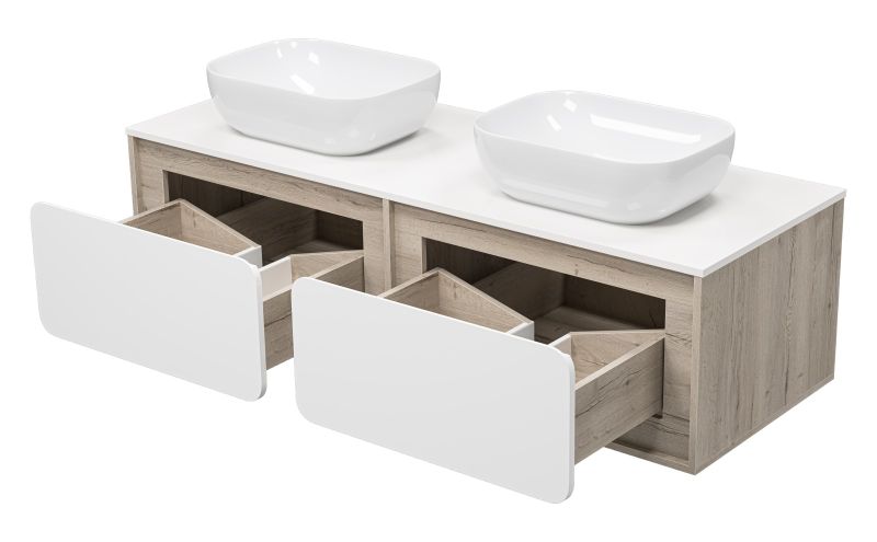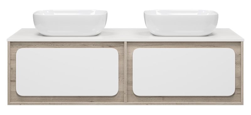 Подвесная тумба под раковину Misty Дубль 150см дуб Галифакс/белый