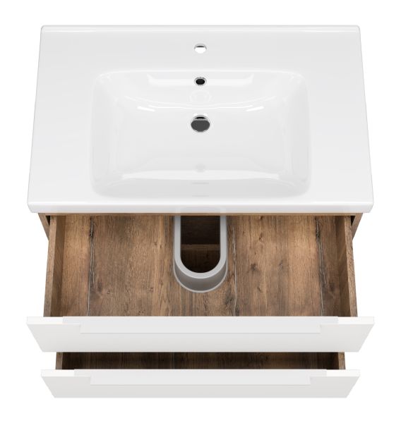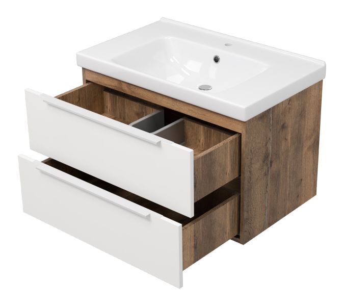 Подвесная тумба под раковину Misty Карат 80см белый/дуб Галифакс олово