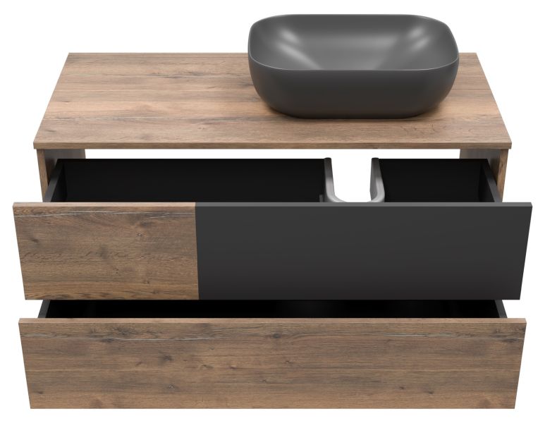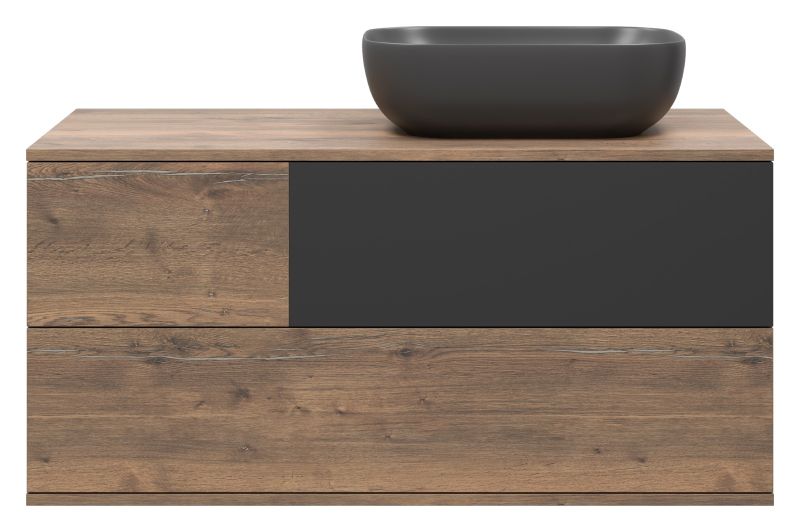 Подвесная тумба под раковину Misty Коломбо 100см правая дуб Галифакс/антрацит