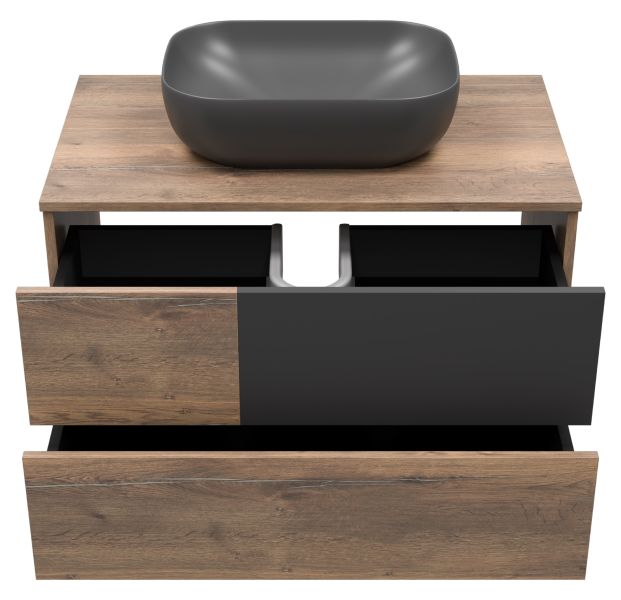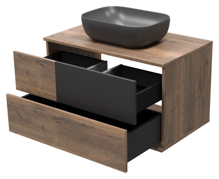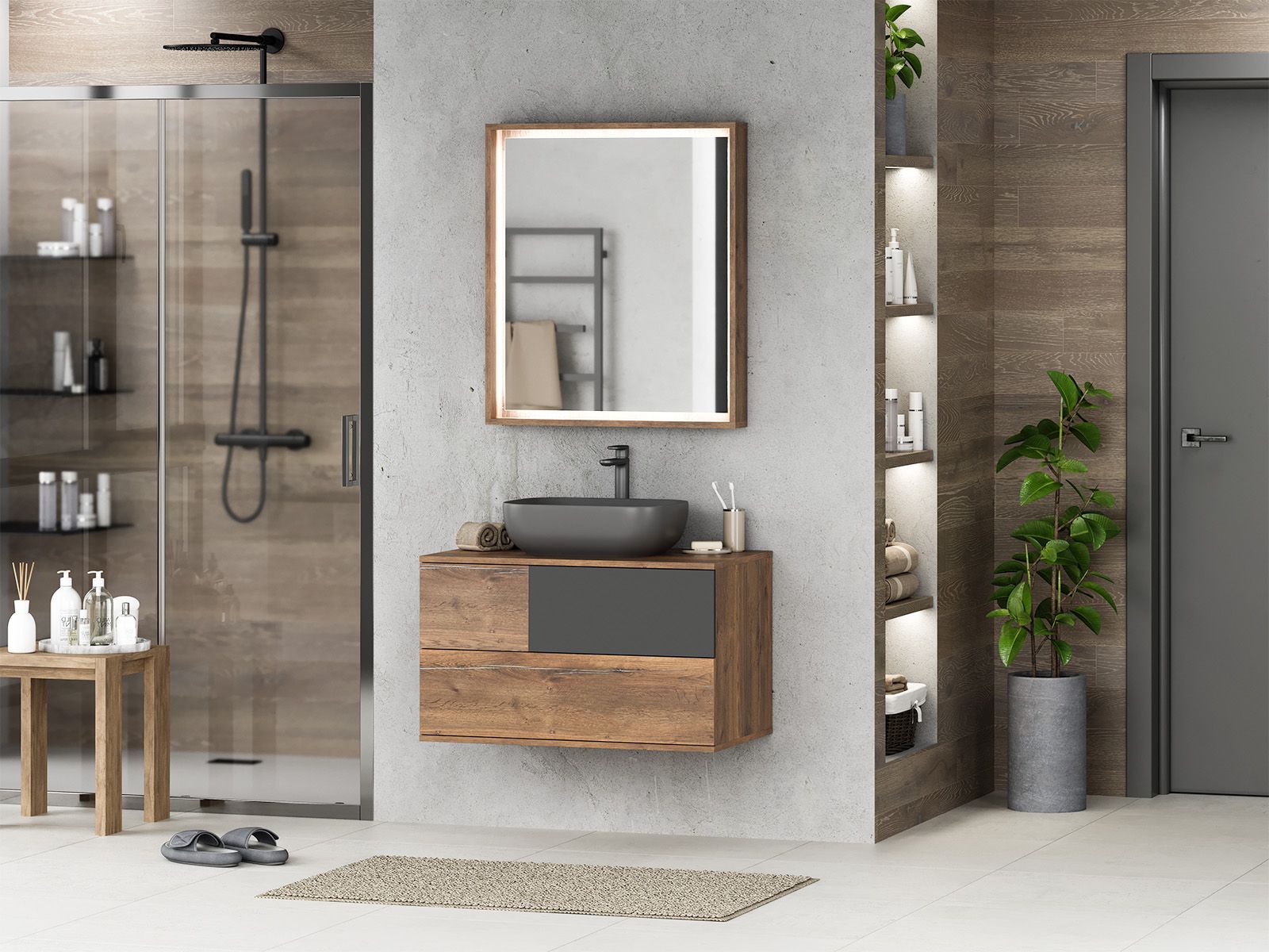 Подвесная тумба под раковину Misty Коломбо 80см дуб Галифакс/антрацит