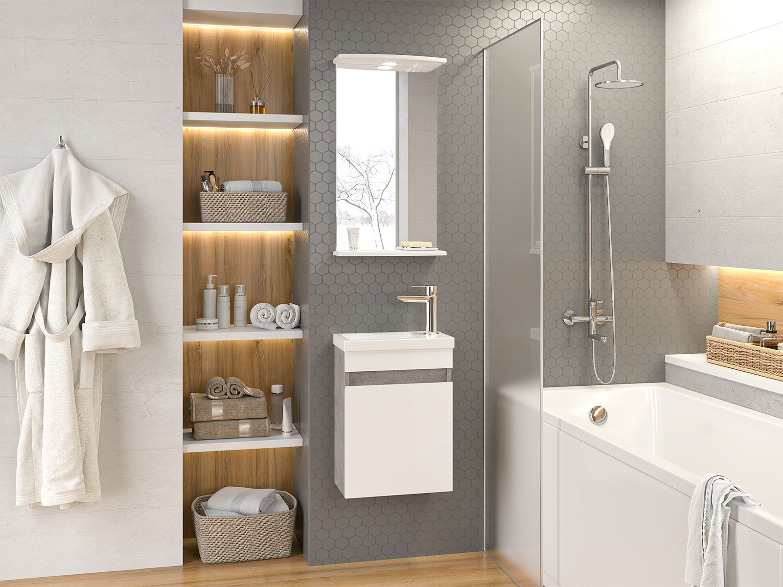 Подвесная тумба под раковину Misty Ронда 40см белый/бетон Чикаго светло-серый
