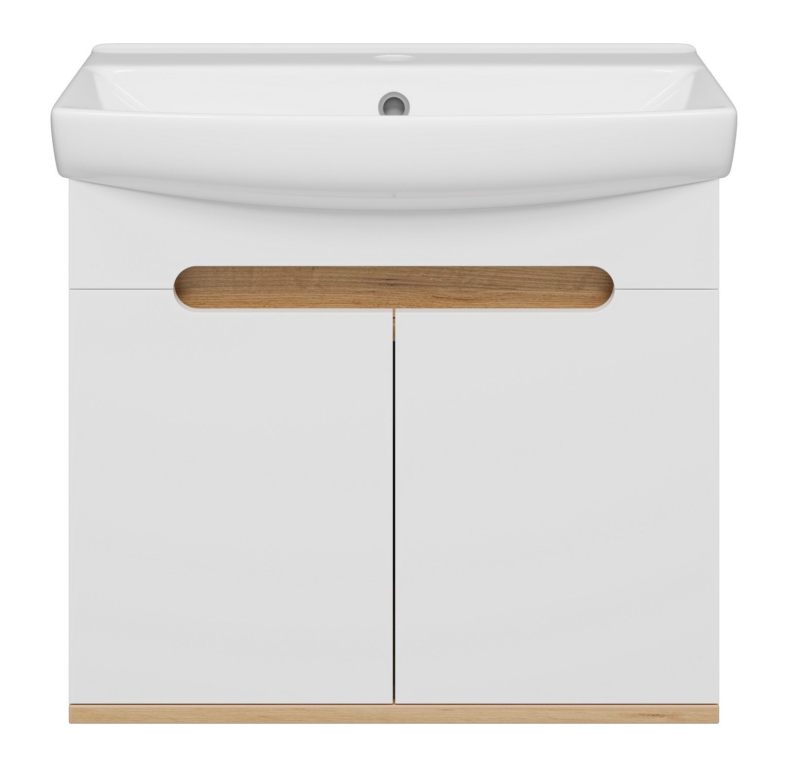 Подвесная тумба под раковину Misty Сканди 60см белый/дуб крафт золотой/антрацит