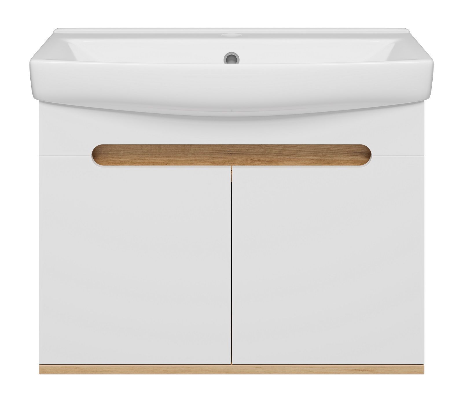 Подвесная тумба под раковину Misty Сканди 70см белый/дуб крафт золотой/антрацит