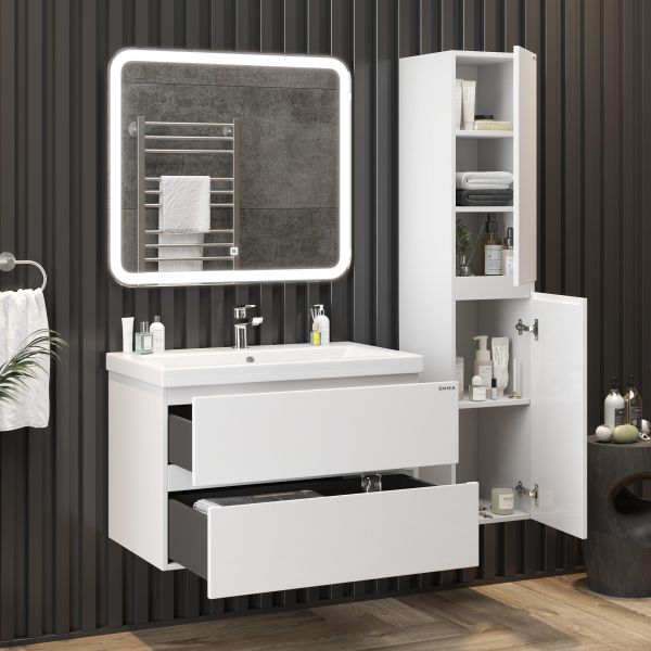 Подвесная тумба для ванной комнаты Onika Эвада 80 сочетает в себе стильный минималистичный дизайн, белую глянцевую поверхность и высочайшее качество исполнения.