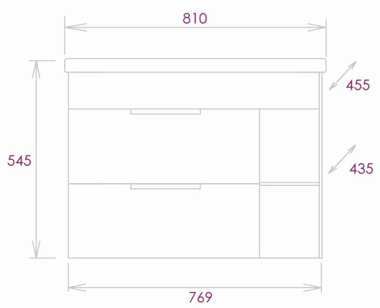 Размеры тумбы без учета раковины 77х43х50 см.