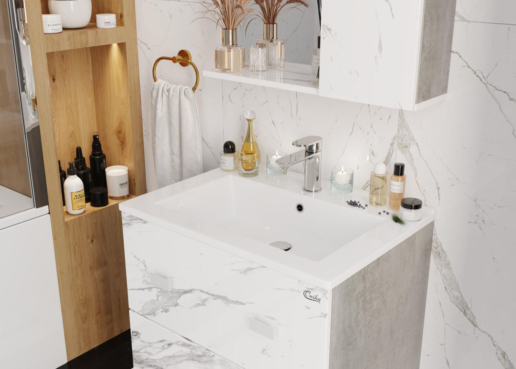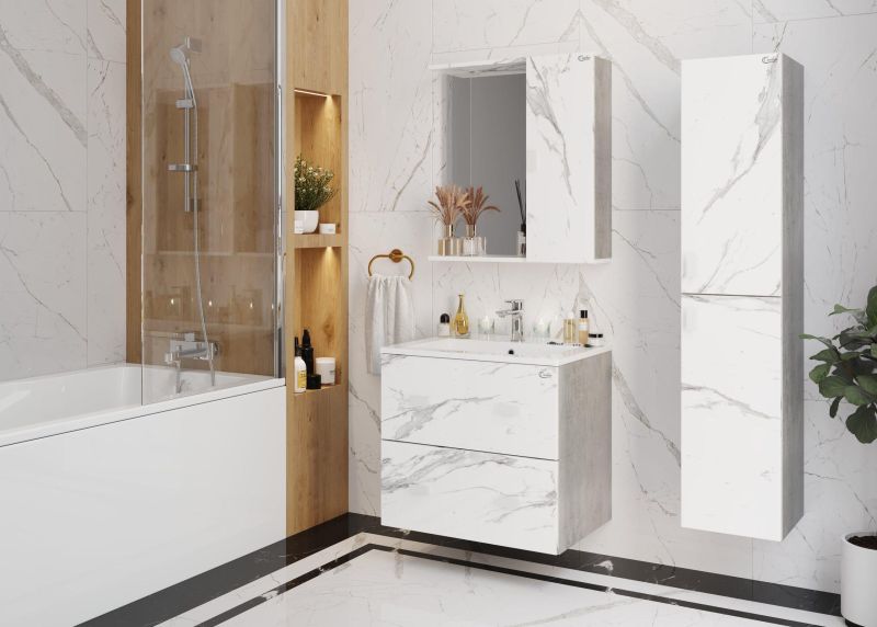 Подвесная тумба Onika Марбл 65 станет стильным и функциональным элементом пространства современной ванной комнаты. Спроектированная дизайнерами в минималистичном облике, тумба отражает самые актуальные расцветки сезона - бетон и мрамор.