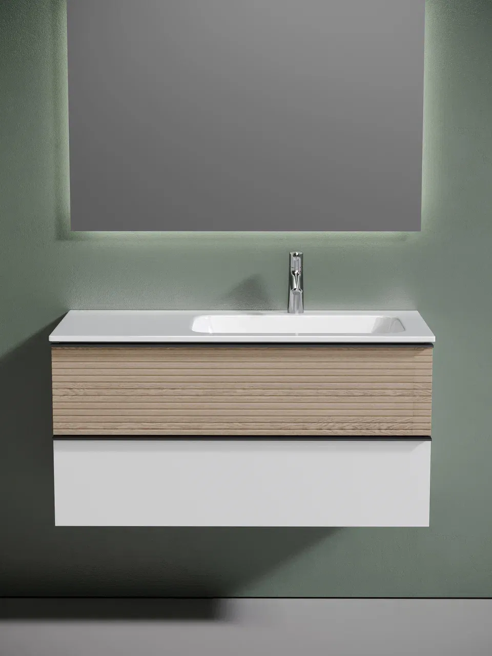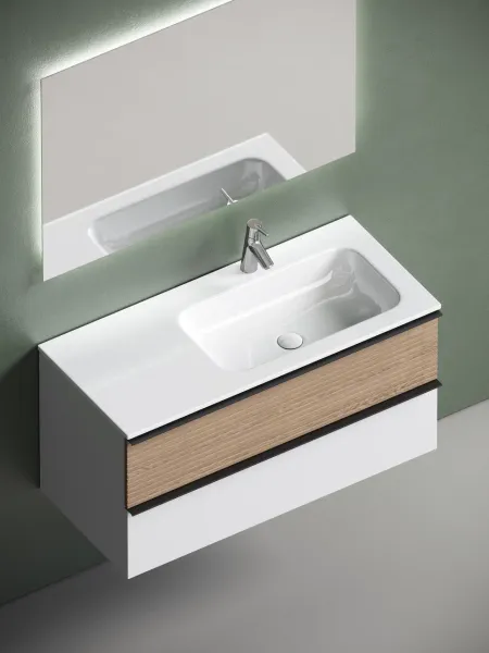 Подвесная тумба под раковину Sancos Delta DL100RW правая 100см дуб светлый/белый купить