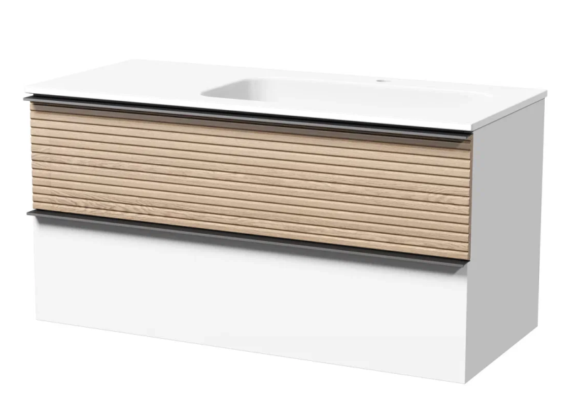 Подвесная тумба под раковину Sancos Delta DL100RW правая 100см дуб светлый/белый