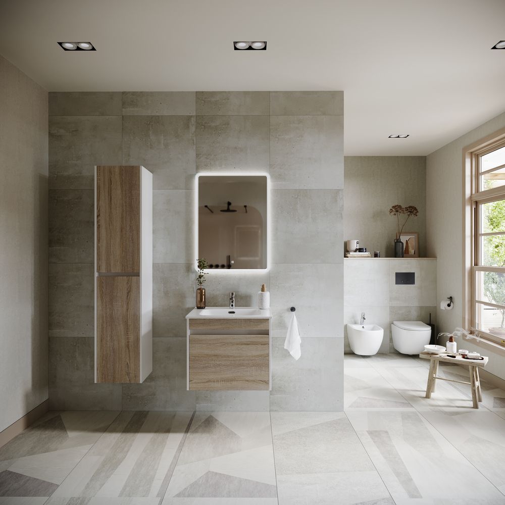 Подвесная тумба под раковину Sancos Smart SM60E 60см дуб бардолино/белый
