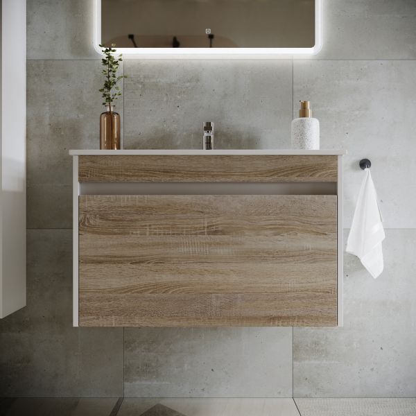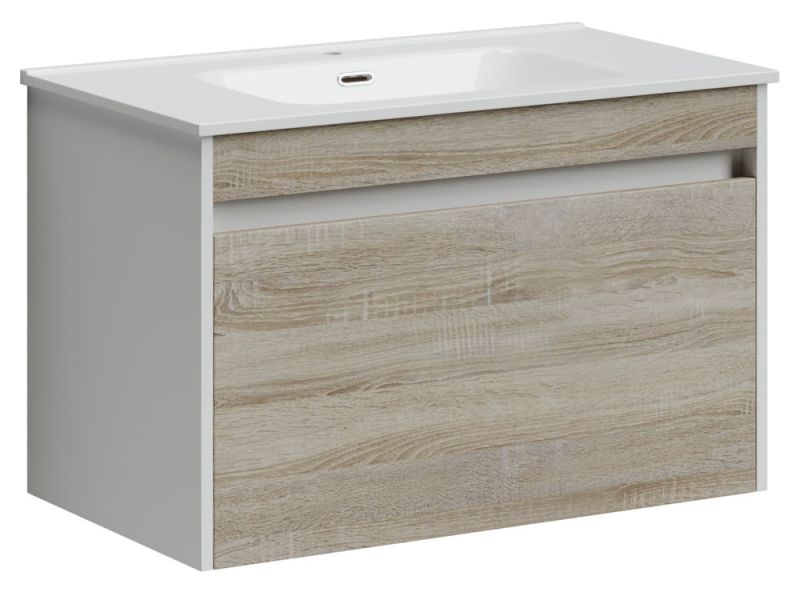Подвесная тумба под раковину Sancos Smart SM80E 80см дуб бардолино/белый