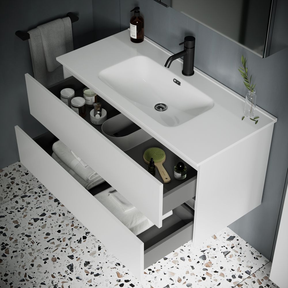 Подвесная тумба под раковину Sancos Urban UR80W 80см белый глянец