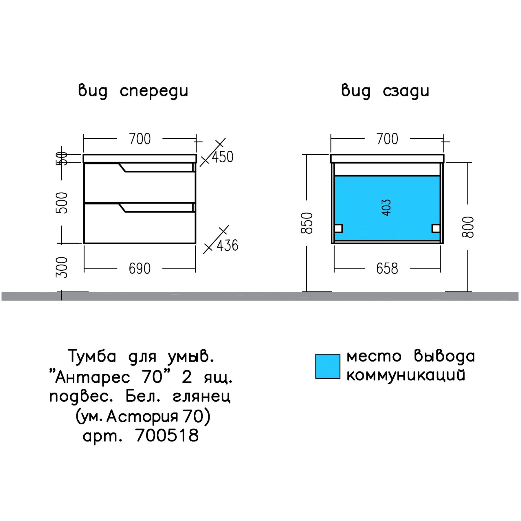 Подвесная тумба под раковину Санта Антарес 700518 70 см белый глянец