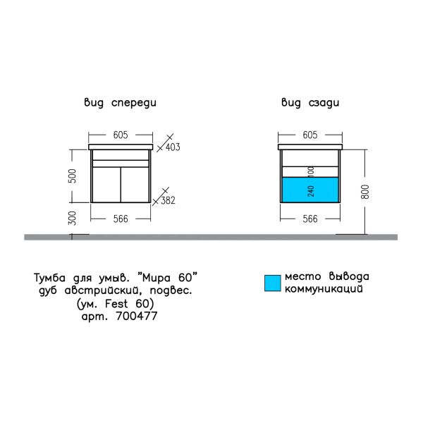 Тумба Мира 60 изготовлена под фаянсовый умывальник Sanita Fest 60.