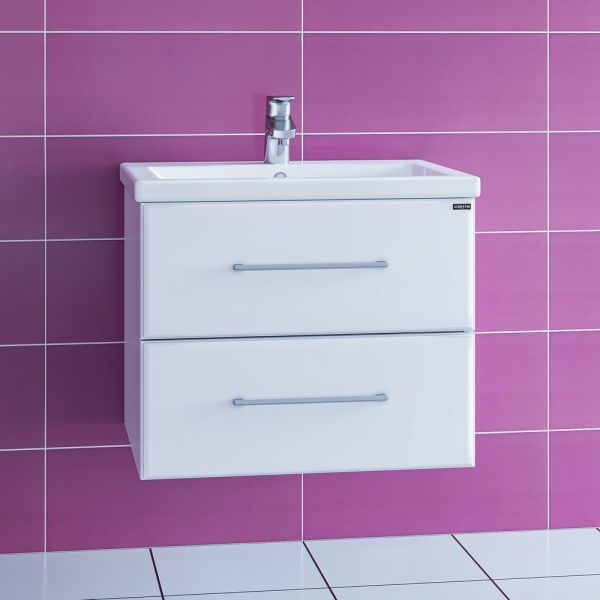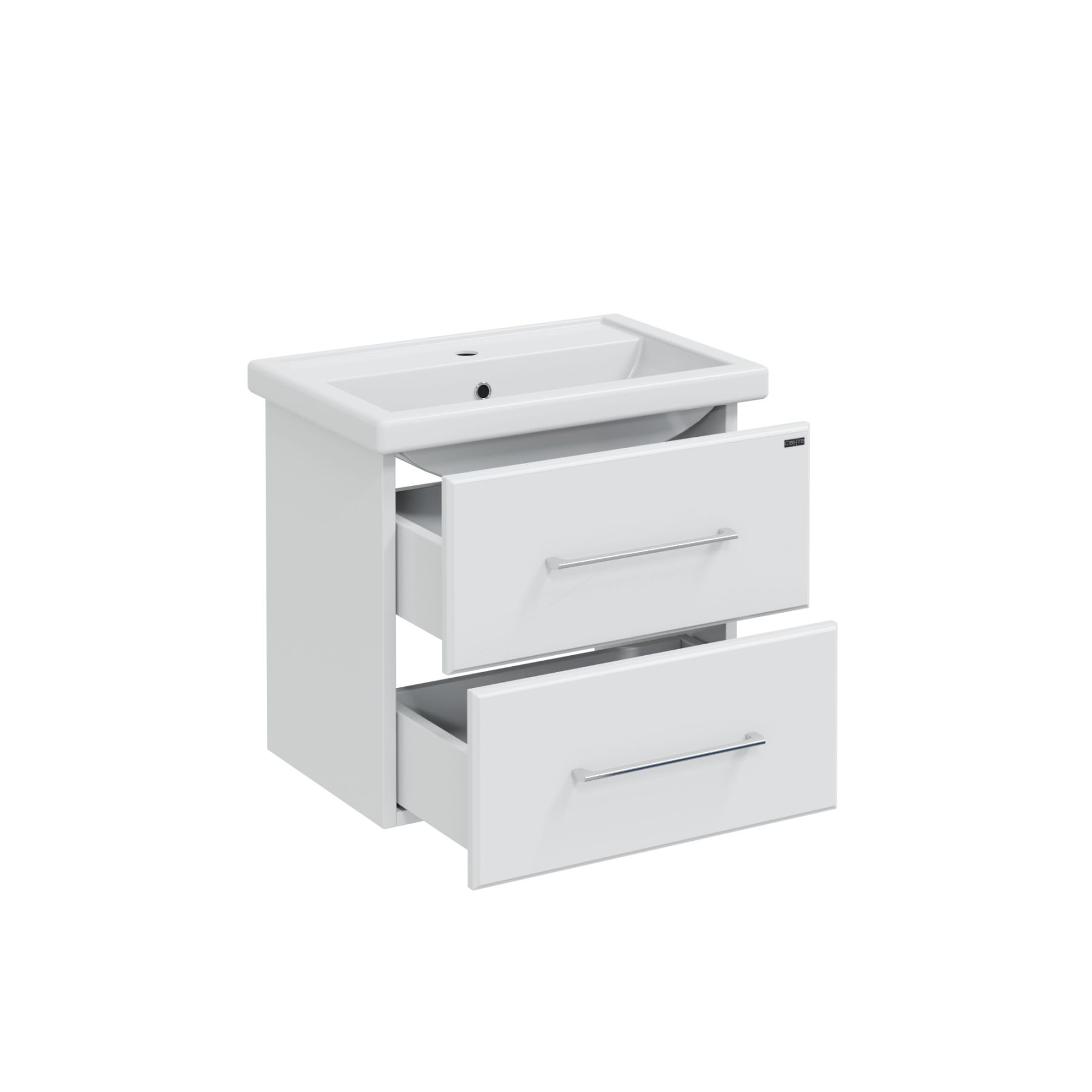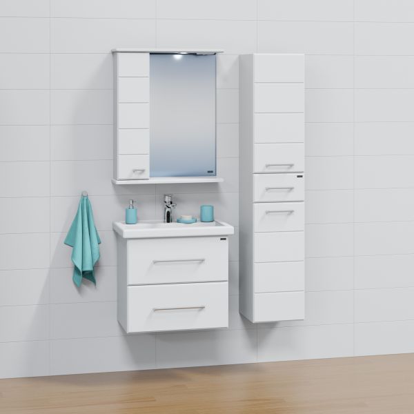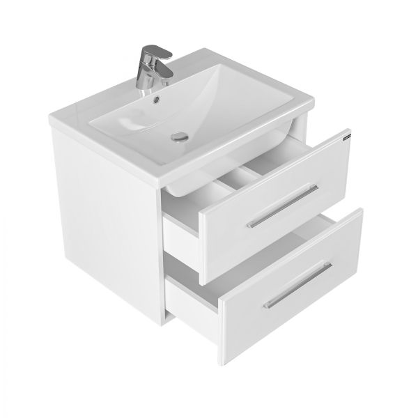 Тумба подвесная Омега 60 для умывальника Фостер 60. Корпус изделия выполнен из влагостойкого ЛДСП, фасад из МДФ и покрыт пленкой. Выдвижные ящики тумбы оснащены шариковыми направляющими полного выдвижения.