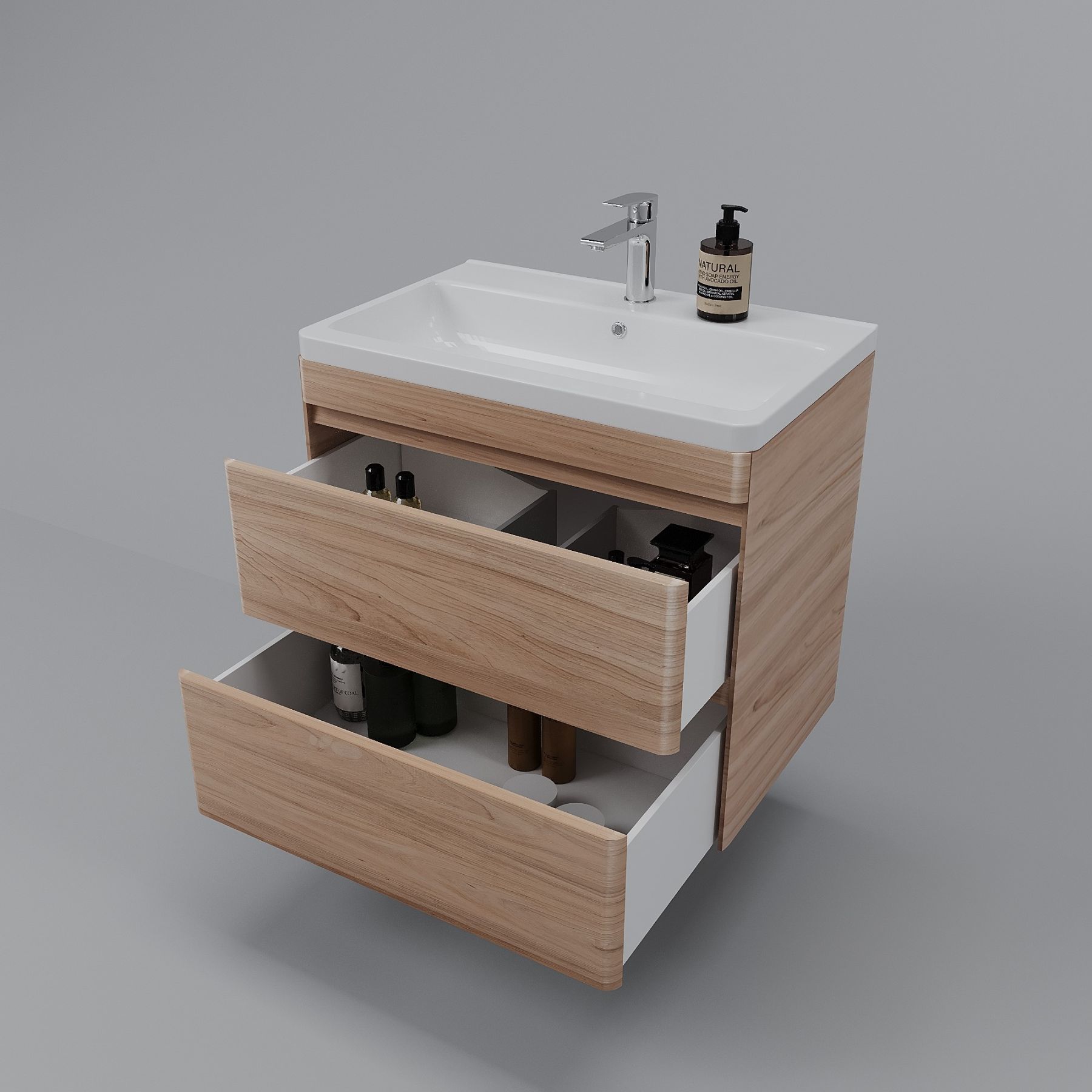 Тумба под раковину Style Line Атлантика 70, СС-00002341, 70 см, подвесная, Люкс Plus, ясень перламутрРаковина приобретается отдельно.