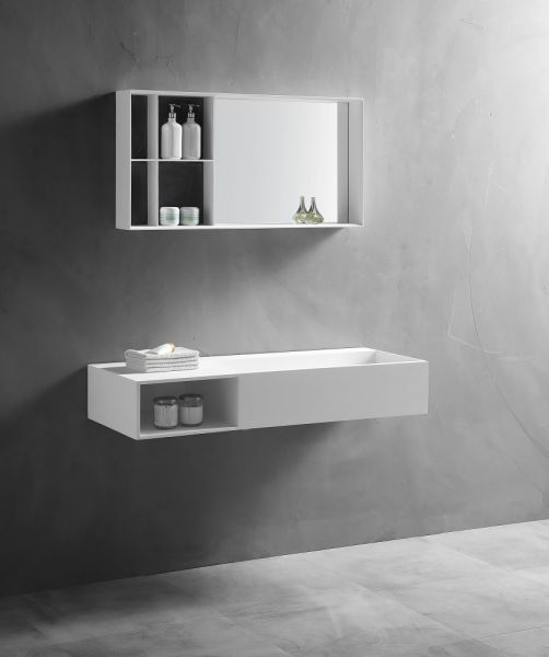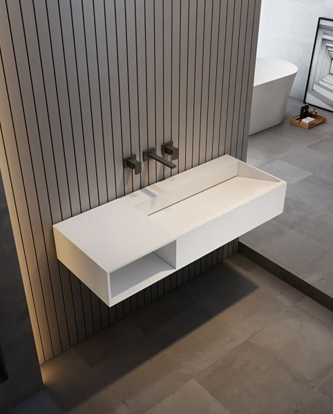 Подвесная тумба с раковиной ABBER Stein AS2640-1.2 L левая 120см белый матовый