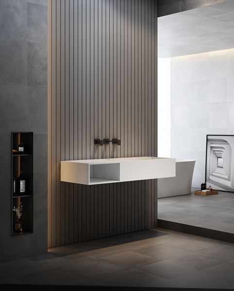 Подвесная тумба с раковиной ABBER Stein AS2640-1.2 L левая 120см белый матовый купить