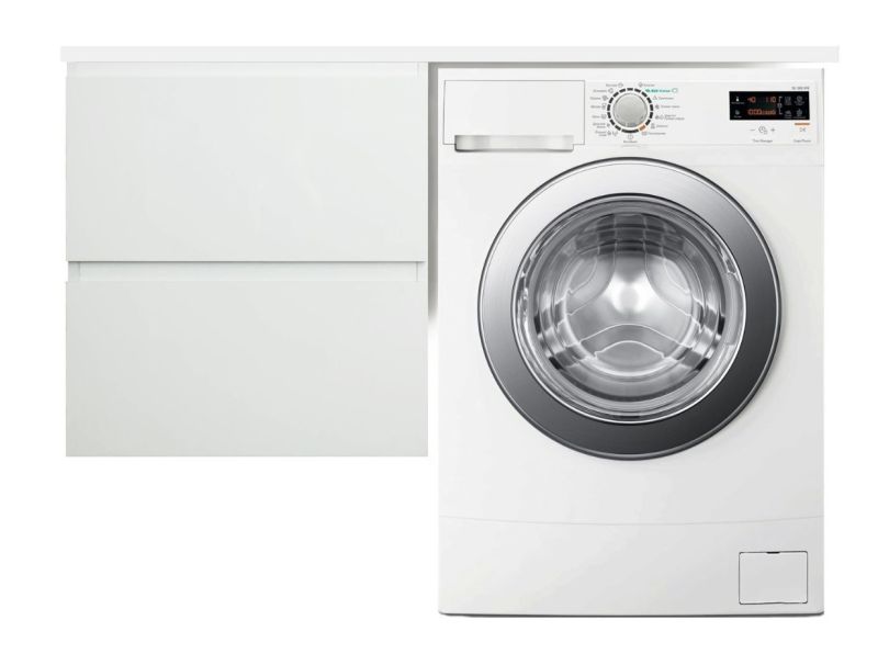 Коллекция мебели для ванной комнаты Dallas Luxe покоряет своей удивительной простой и функциональностью. Стильная лаконичная тумба, укомплектована раковиной из литьевого мрамора с удобной чашей. Стиральная машина устанавливается под столешницей, за счет чего экономит место в ванной комнате. В тумбе имеются два ящика. Нижний ящик тумбы – широкий и вместительный – предназначен для крупных предметов, а в верхнем имеется специальная организация пространства, позволяющая хранить мелкие вещи.