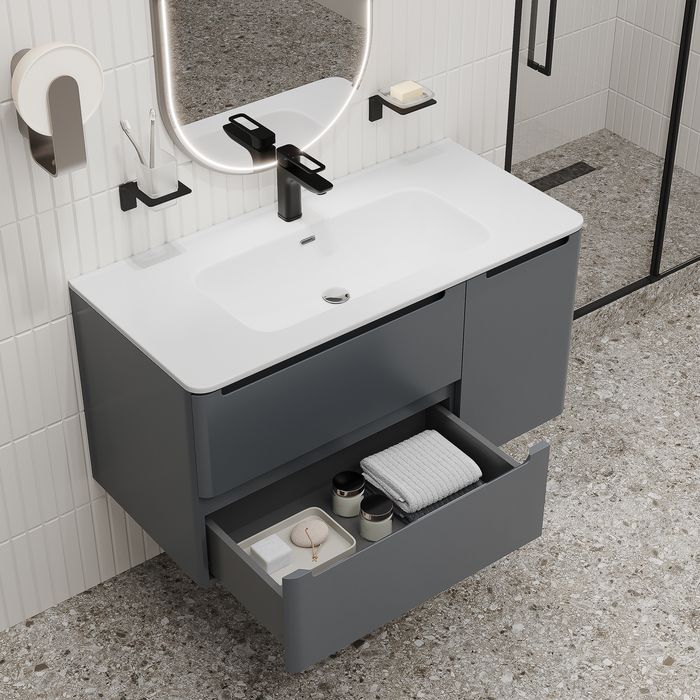 Подвесная тумба с раковиной IDDIS Edifice EDI10D0i95K 100см тёмно-серый