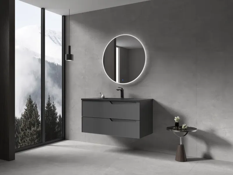 Подвесная тумба с раковиной Parly Spa Rhea100 чёрный матовый