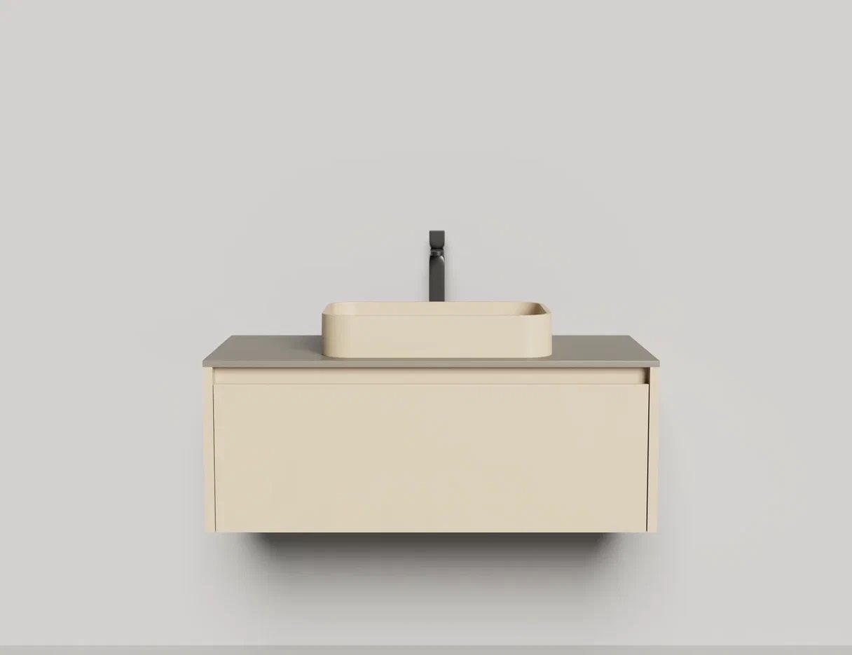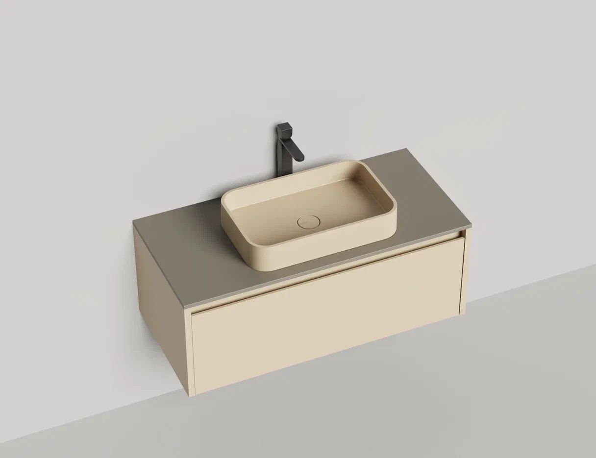 - Тумба и столешница из материала S-Stone в сборе (накладные раковины укомплектованы донным клапаном и поставляются в отдельной коробке)