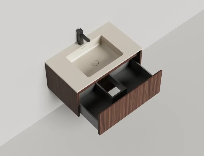 Наполнение для тумбы включает: блоки ячеек для тумб, коврики и комплект внутренней подсветки, которые помогут организовать пространство и создать более удобный доступ к вещам.Тумба DOMINO, дополненная столешницей COSTA из каменного литья S-Stone, гарантирует практичность и простоту ухода.