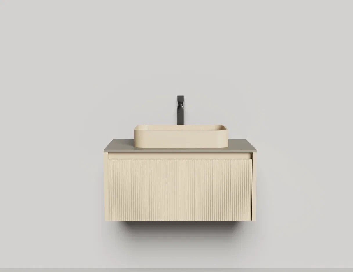 - Тумба и столешница из материала S-Stone в сборе (накладные раковины укомплектованы донным клапаном и поставляются в отдельной коробке)