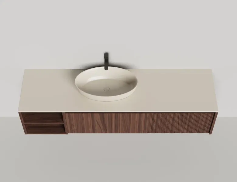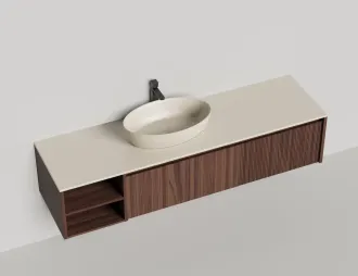 Наполнение для тумбы включает: блоки ячеек для тумб, коврики и комплект внутренней подсветки, которые помогут организовать пространство и создать более удобный доступ к вещам.Тумба DOMINO, дополненная столешницей COSTA из каменного литья S-Stone, гарантирует практичность и простоту ухода.