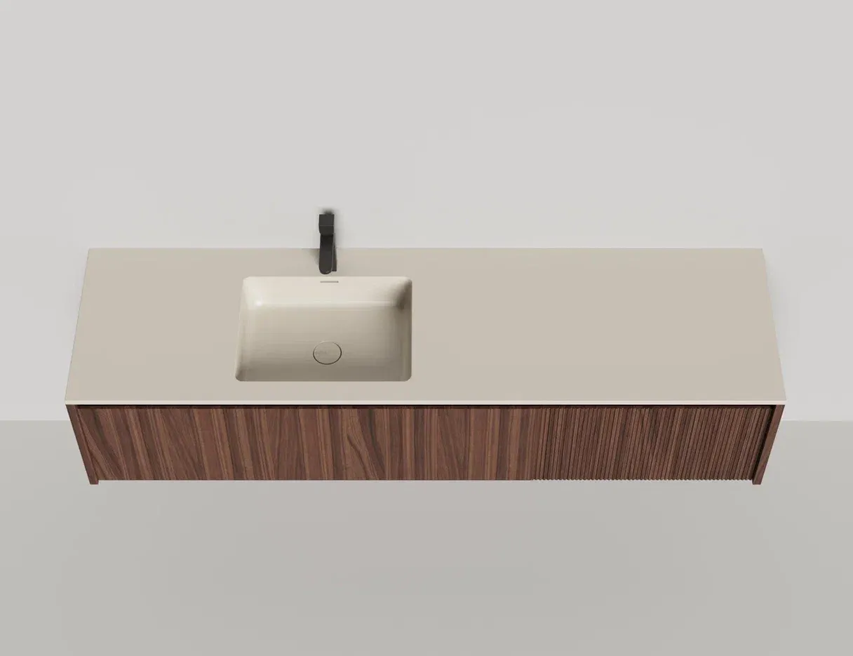 - Тумба и столешница из материала S-Stone в сборе (накладные раковины укомплектованы донным клапаном и поставляются в отдельной коробке)