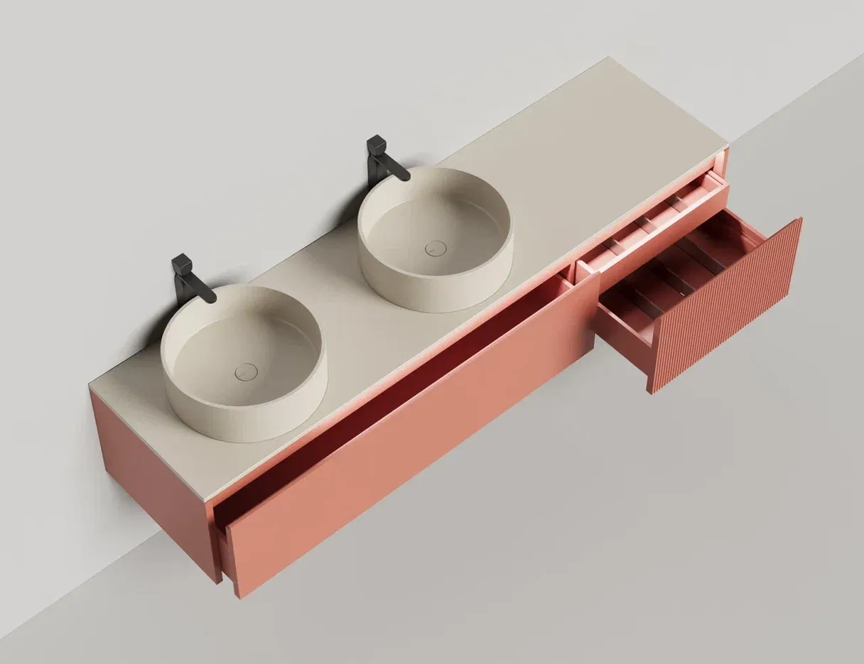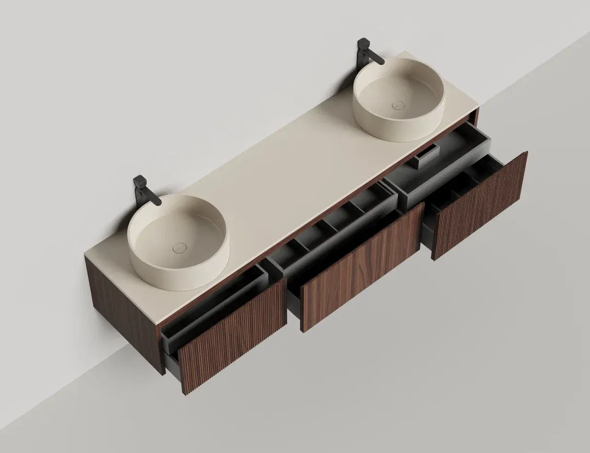 Наполнение для тумбы включает: блоки ячеек для тумб, коврики и комплект внутренней подсветки, которые помогут организовать пространство и создать более удобный доступ к вещам.Тумба DOMINO, дополненная столешницей COSTA из каменного литья S-Stone, гарантирует практичность и простоту ухода.