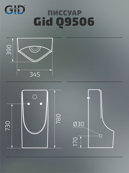 Подвесной сенсорный писсуар Gid Q9506 91111 белый 34.5x39x78 купить