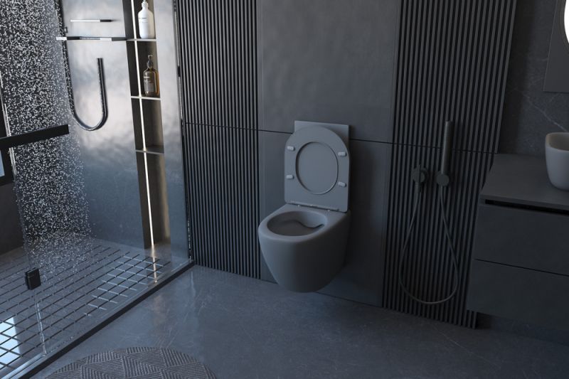 Подвесной унитаз ABBER Bequem AC1101MG безободковый серый матовый
