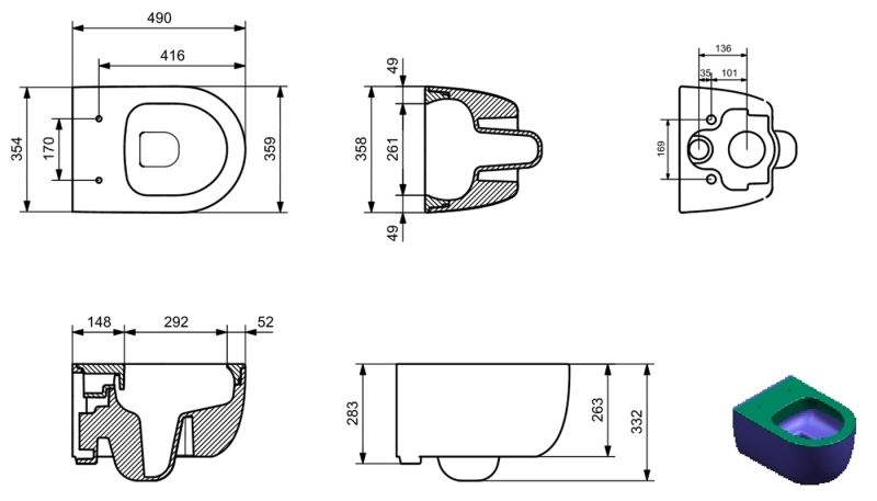 Укороченный унитаз:нет